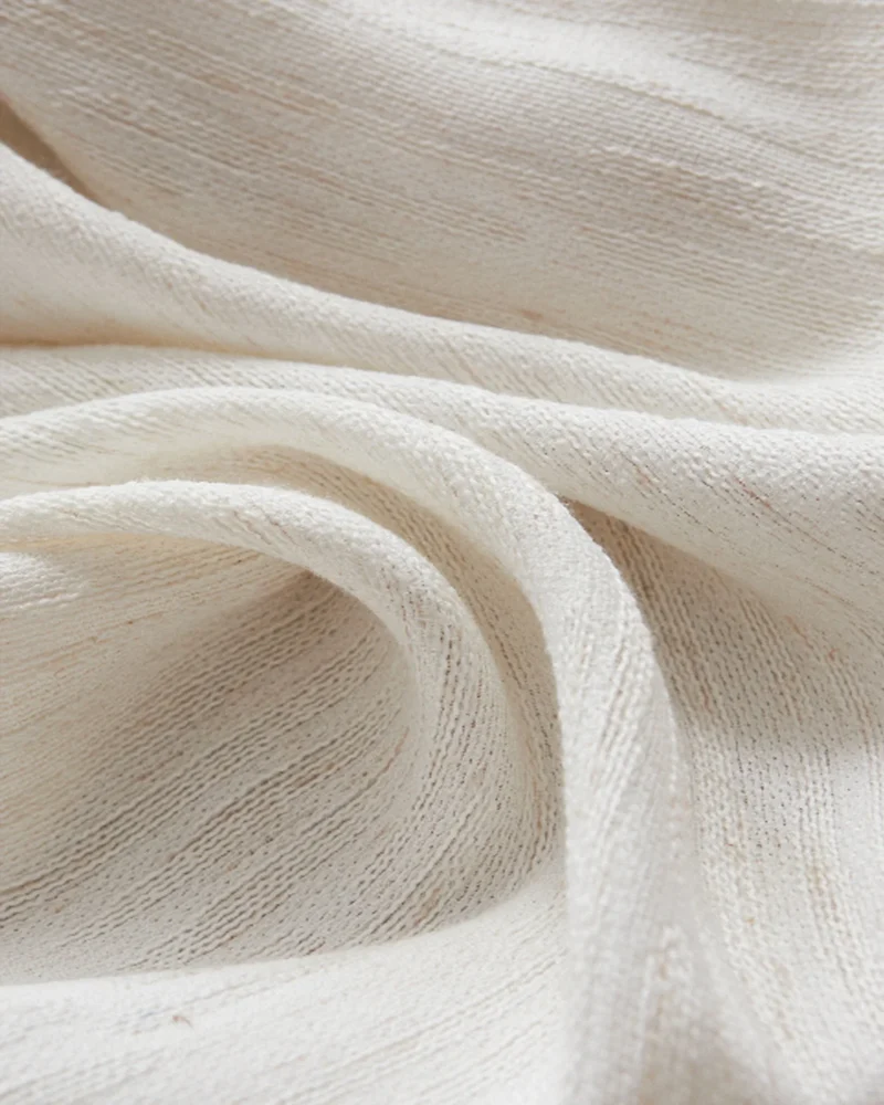 The textured structure helps the fabric fall neatly, creating a light, tidy drape that looks finished and elegant in everyday use.