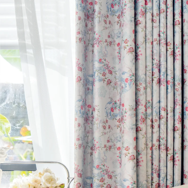 Decorated with delicate birds and floral vines, this curtain captures the warmth of countryside elegance. Its vintage aesthetic suits French provincial, cottagecore, and shabby chic spaces.