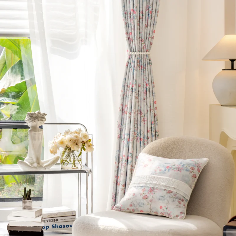 This bird and floral curtain by Lemonho blends romantic style with everyday practicality. Featuring hand-drawn birds nestled among blooming garden florals, it’s printed on a soft neutral base and crafted from breathable, medium-weight fabric that gently filters light. The curtain’s tailored pleats and flowing drape make it a timeless choice for vintage-inspired interiors.
