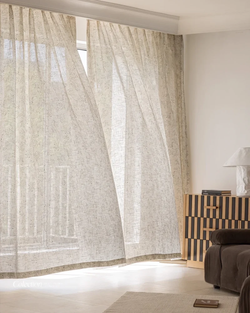 Botanical linen look curtains can feel airy, calm and quietly elevated—meet the botanical linen look curtains – Luxury Whisper by Lemonho. Set on a warm neutral base with a fine twig-and-leaf botanical print, these botanical linen look curtains soften daylight, reduce glare, and add comfortable everyday privacy without making the room feel heavy. The linen-look texture pairs beautifully with cream walls, timber tones, rattan accents and natural décor—perfect for living rooms, bedrooms and relaxed minimalist interiors.