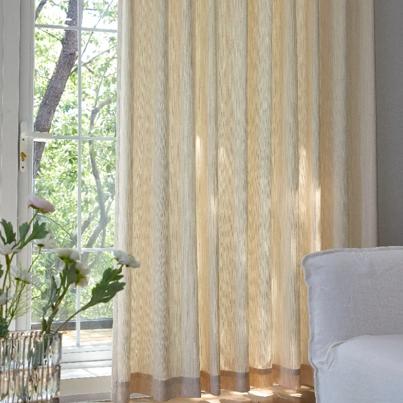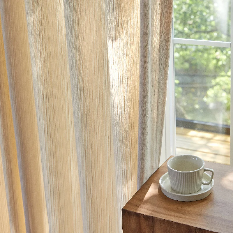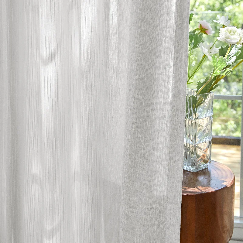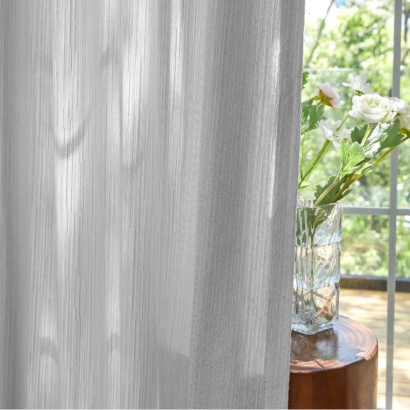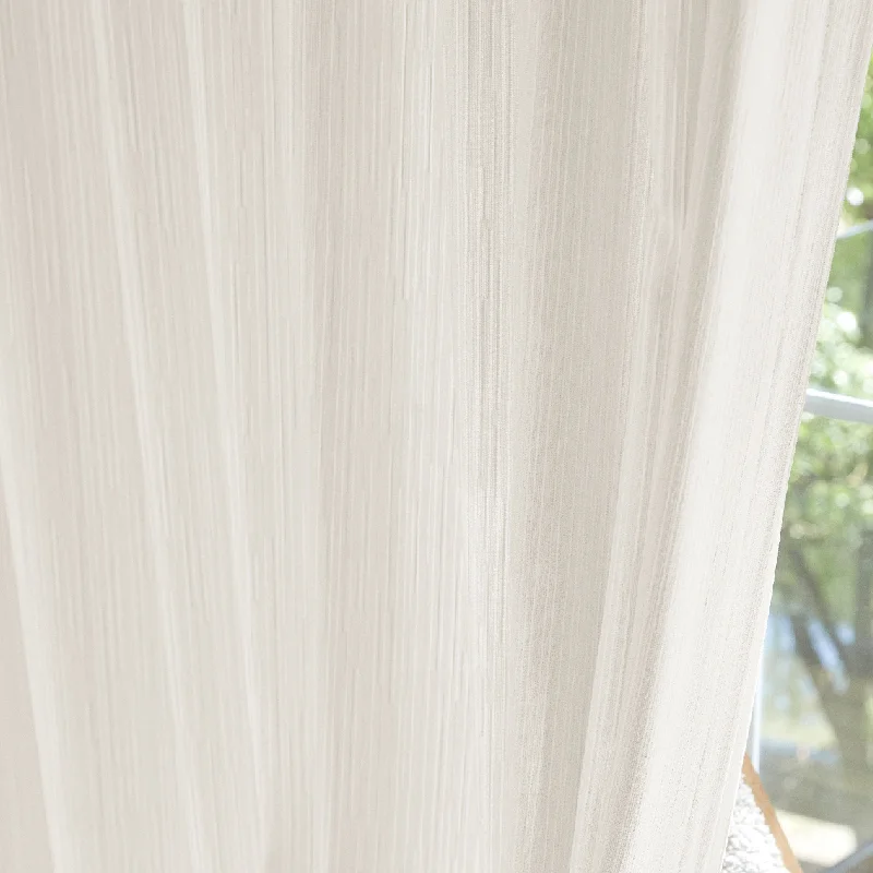 Woven from fine chenille yarns, this sheer curtain provides a luxurious hand-feel while maintaining a light, breathable structure—ideal for creating cozy yet open spaces.