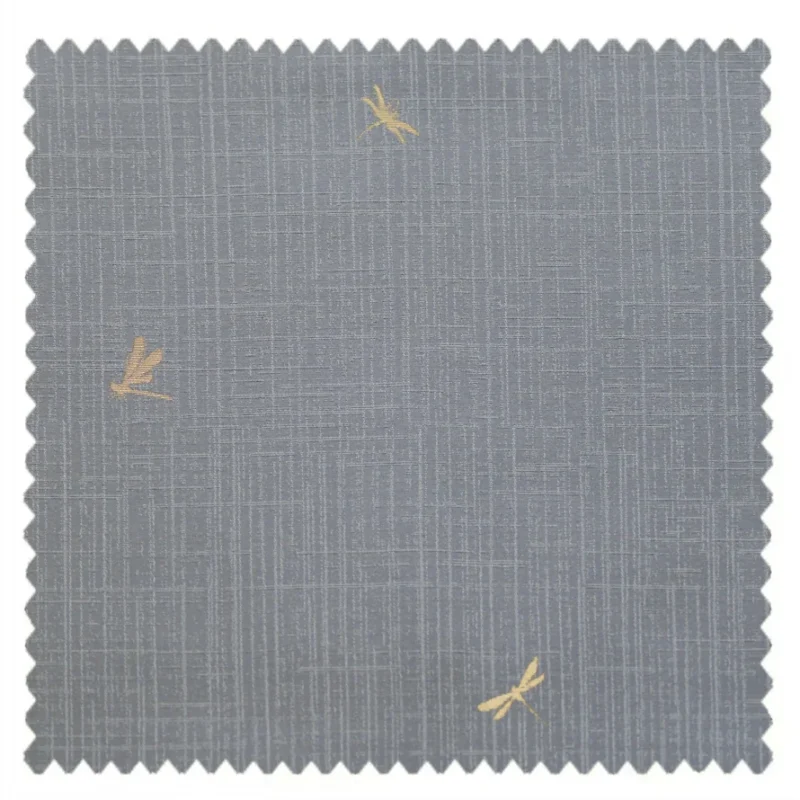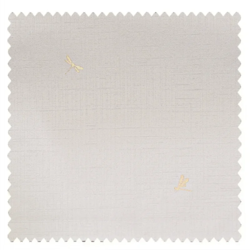 Woven from tightly packed threads, this curtain features a minimal textured surface with soft golden dragonfly accents. The embroidery adds a whisper of detail without overwhelming the fabric’s clean and modern look.