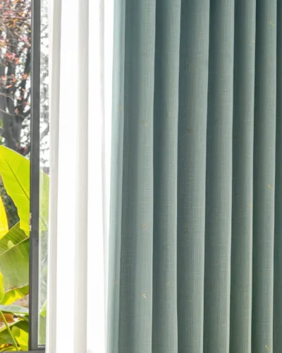 The curtain gently filters sunlight, allowing warm, diffused light to enter while preserving indoor privacy. Ideal for creating a calming ambiance in bedrooms, reading corners, or tranquil living spaces.