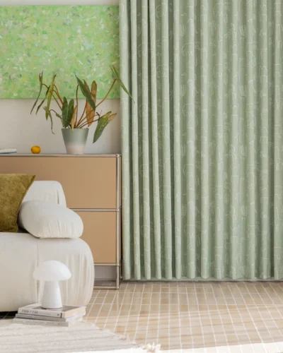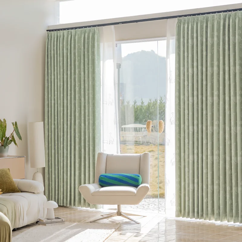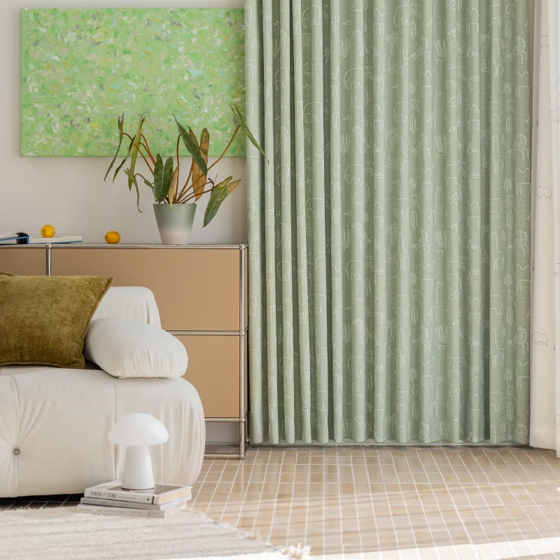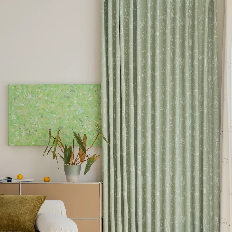 This whimsical jacquard curtain by Lemonho brings imagination and gentle texture to children’s interiors. Featuring an animal jacquard fabric design, this soft green curtain is woven with charming line-art motifs of giraffes, birds, and bears. It introduces playful energy and a cozy natural vibe—perfect for nurseries, reading corners, and toddler playrooms. The textured surface offers light filtering with warmth and style.