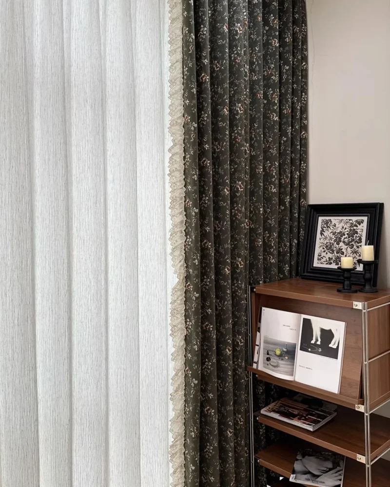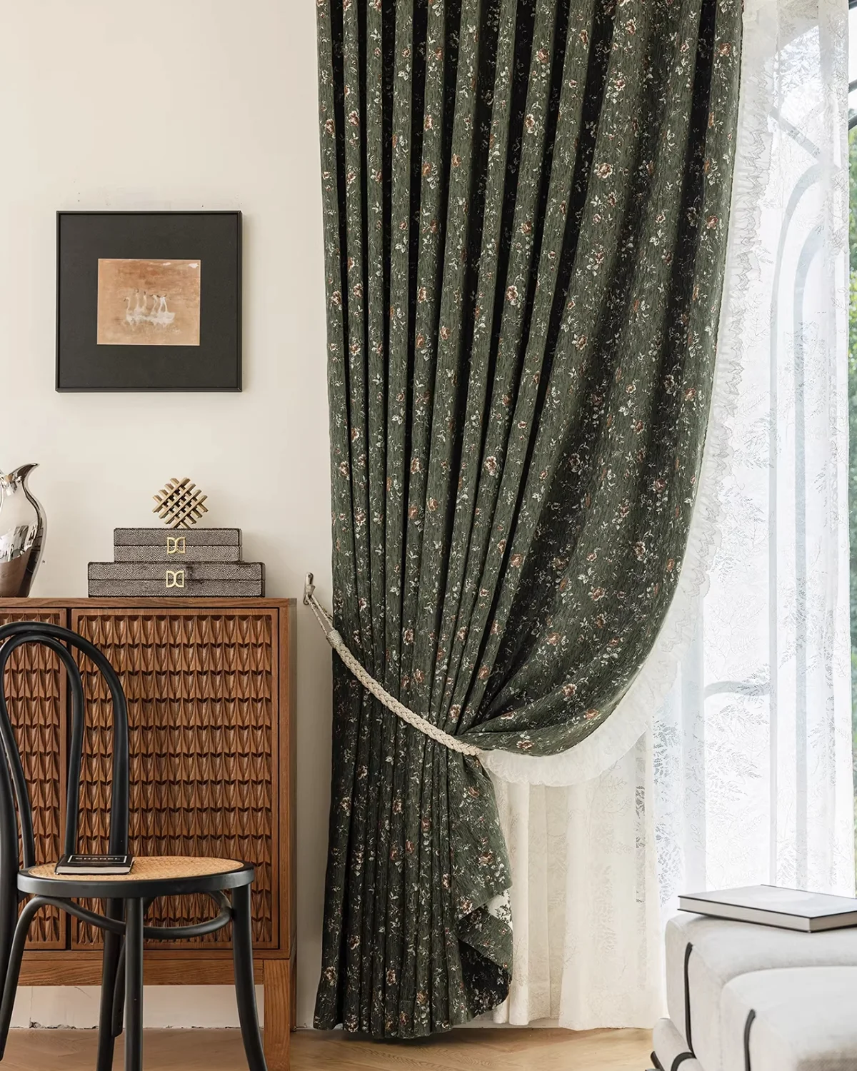 Inspired by classic garden florals, the pattern is woven (not printed) into the fabric for a more dimensional, textured look. Up close you’ll see layered blossoms and vine details; from a distance it reads rich, elegant, and cohesive—ideal for anyone searching vintage floral curtains with a more elevated finish.