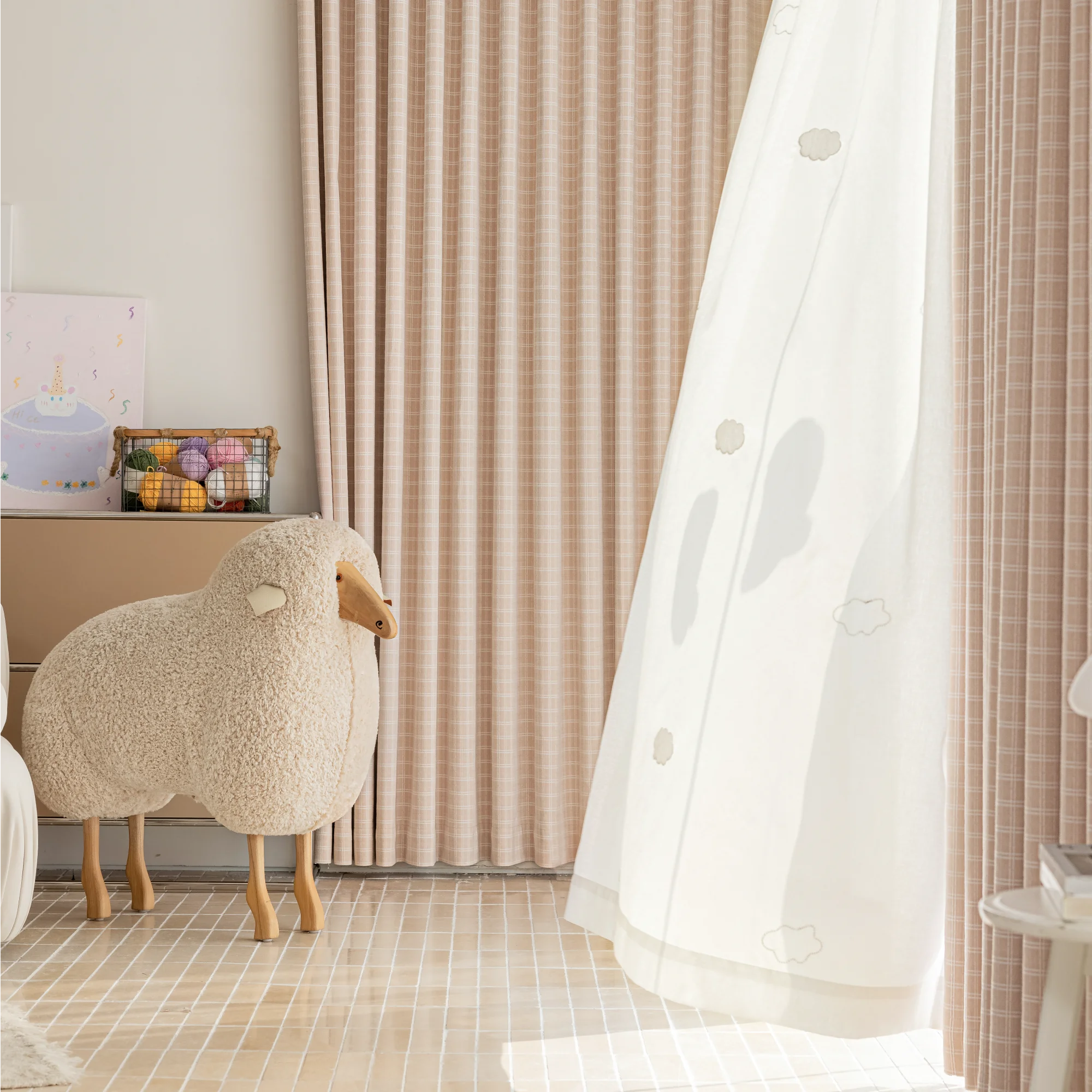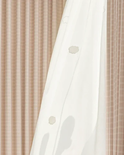 Gridline Whisper Curtain – Subtle Texture, Modern Feel.