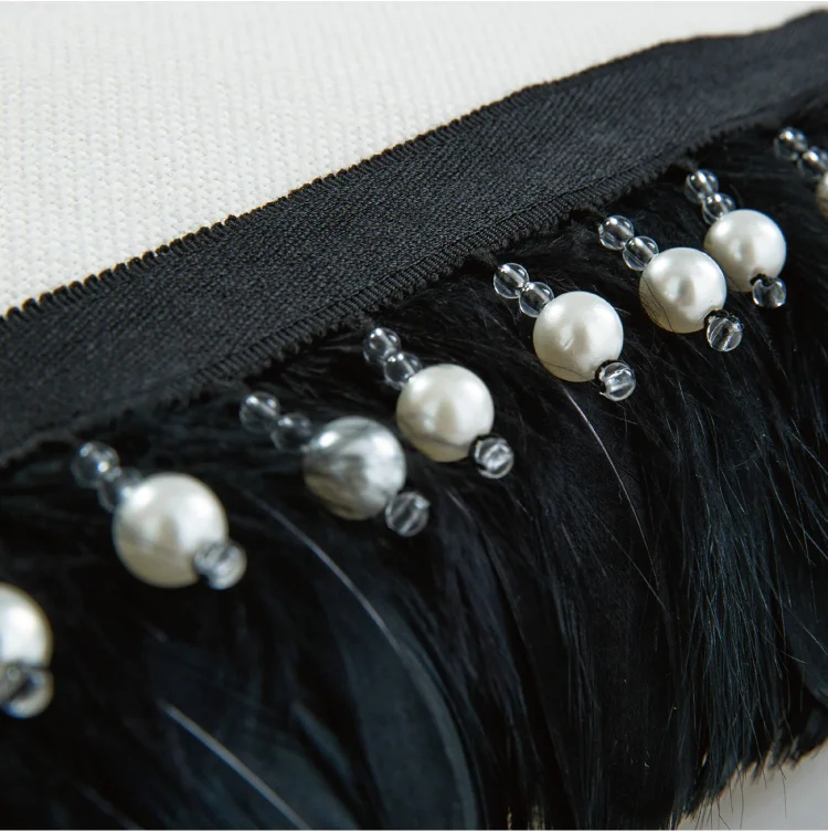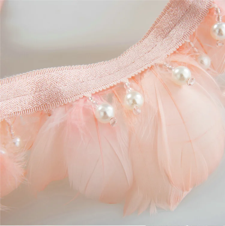 Inspired by graceful couture and soft romantic tones, the Hera Feather Curtain Trim is a delicate decorative fringe designed to elevate modern and feminine interiors. Adorned with blush pink feathers and pearl accents, this feather curtain trim brings a gentle rhythm and luxurious texture to any curtain or drapery. Perfect for nursery drapes, bridal decor, or elegant living spaces, the Hera trim adds a dreamy, handcrafted finish to your window styling.