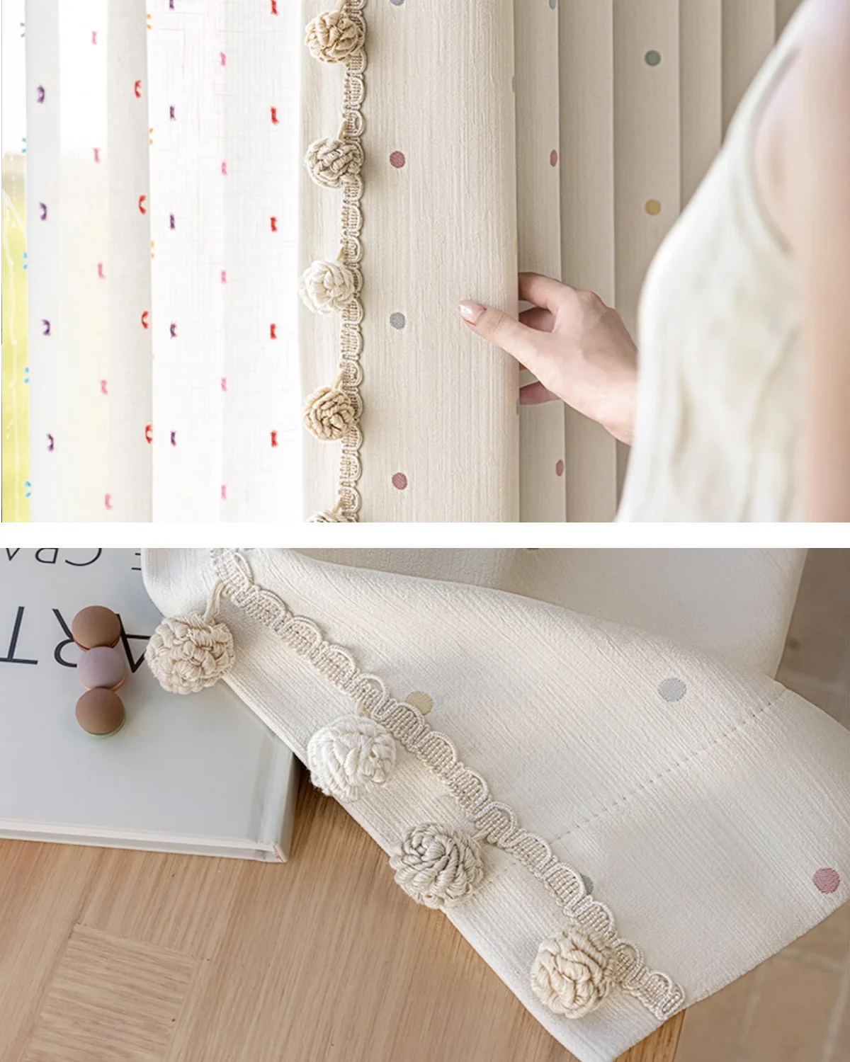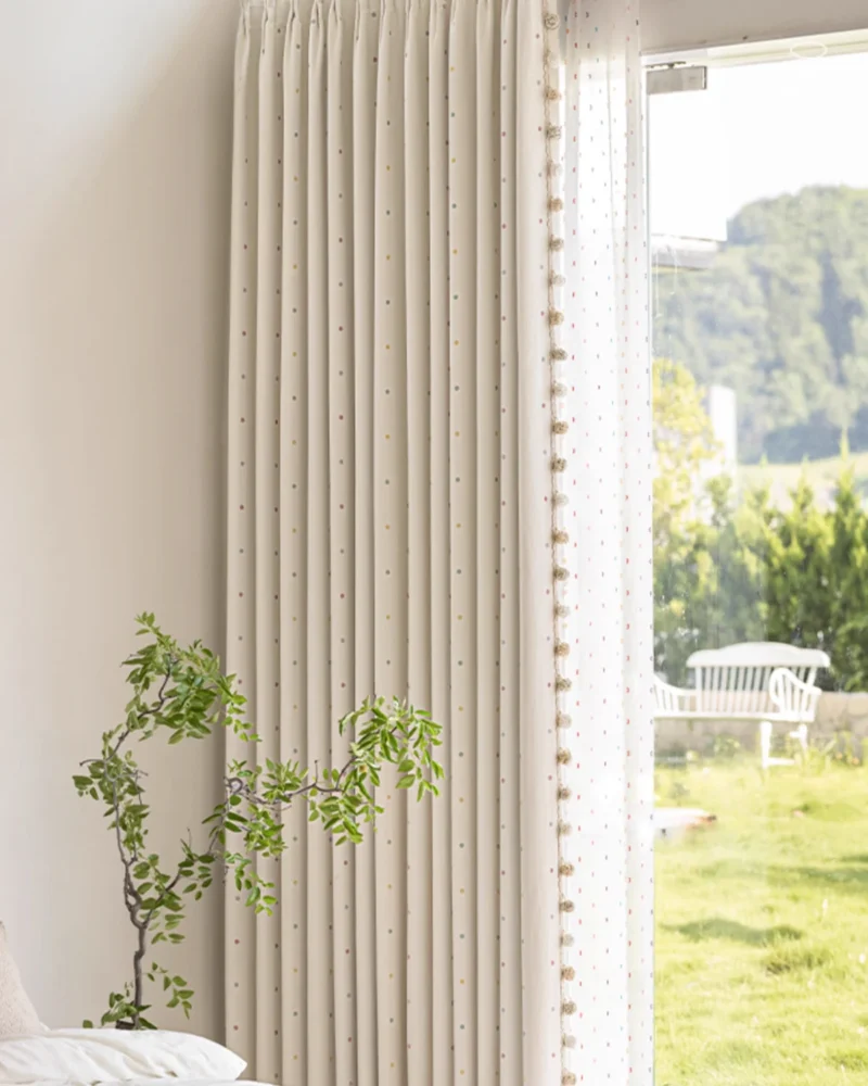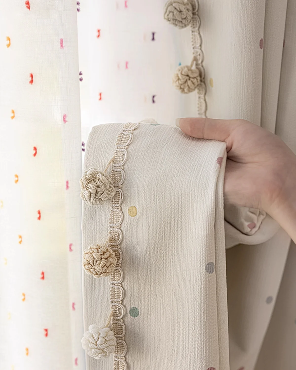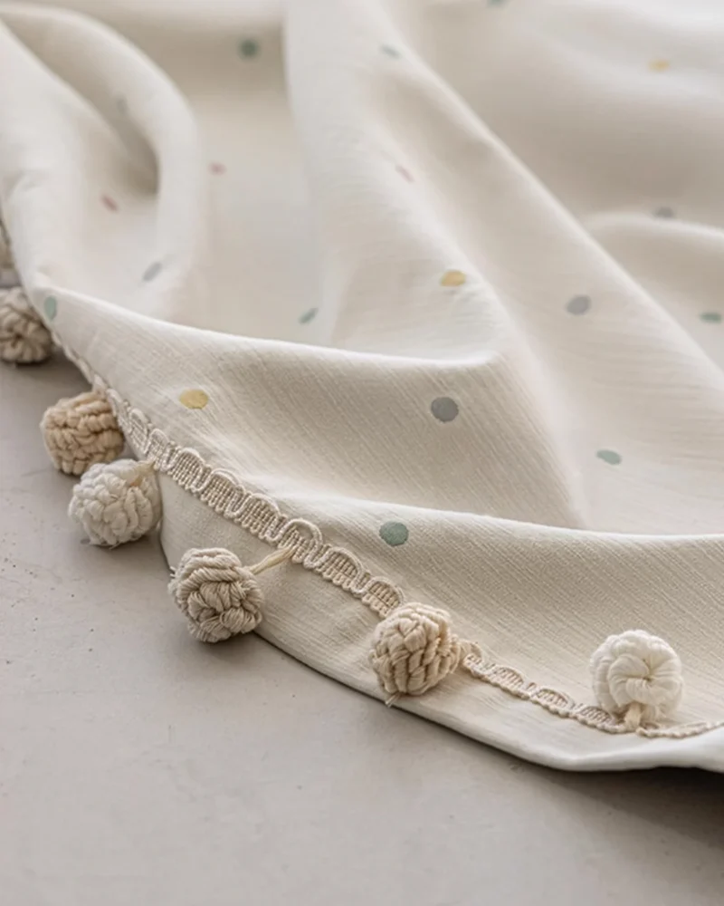 Macaron Dot Pom Pom Curtain – Soft Textured Weave