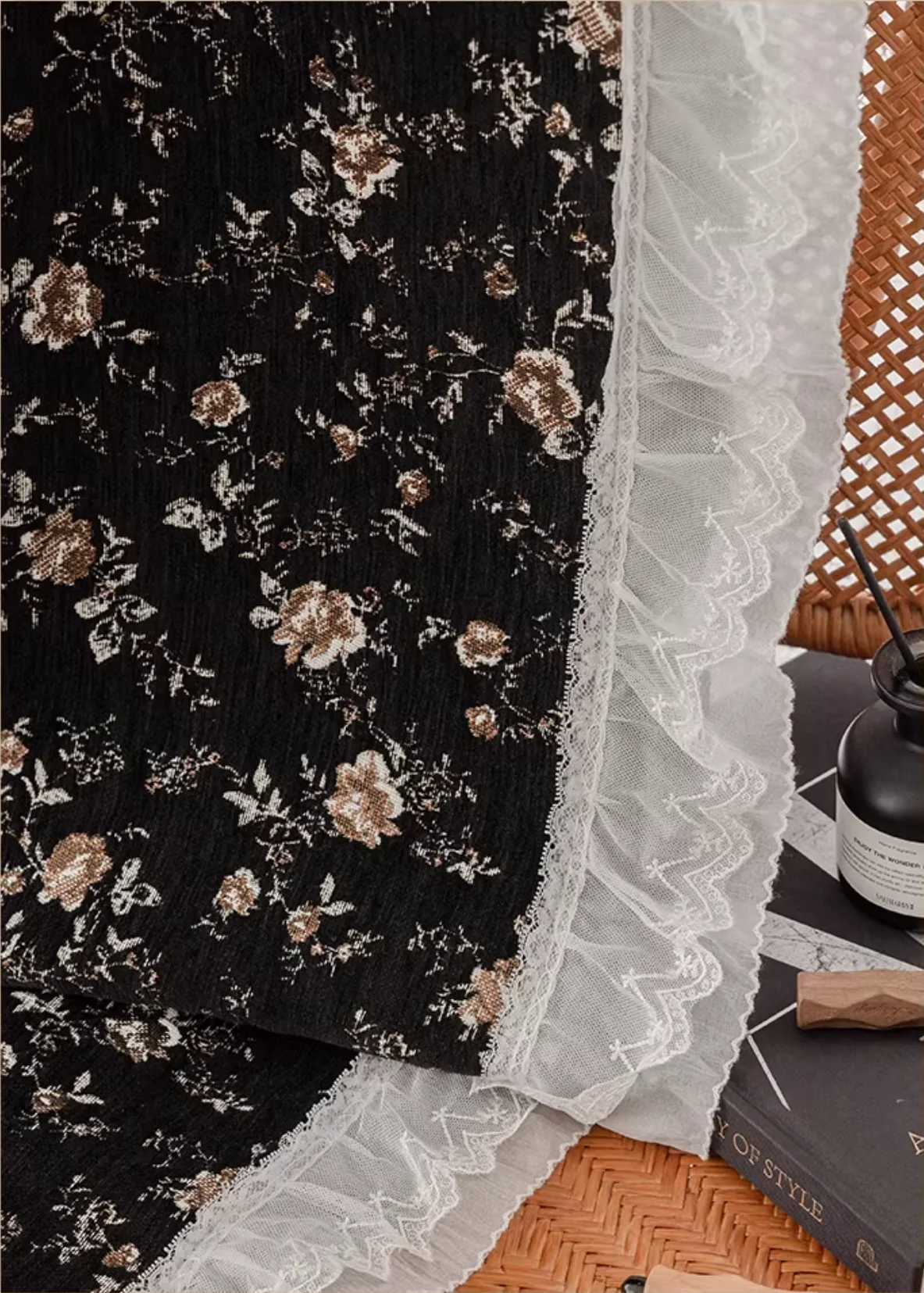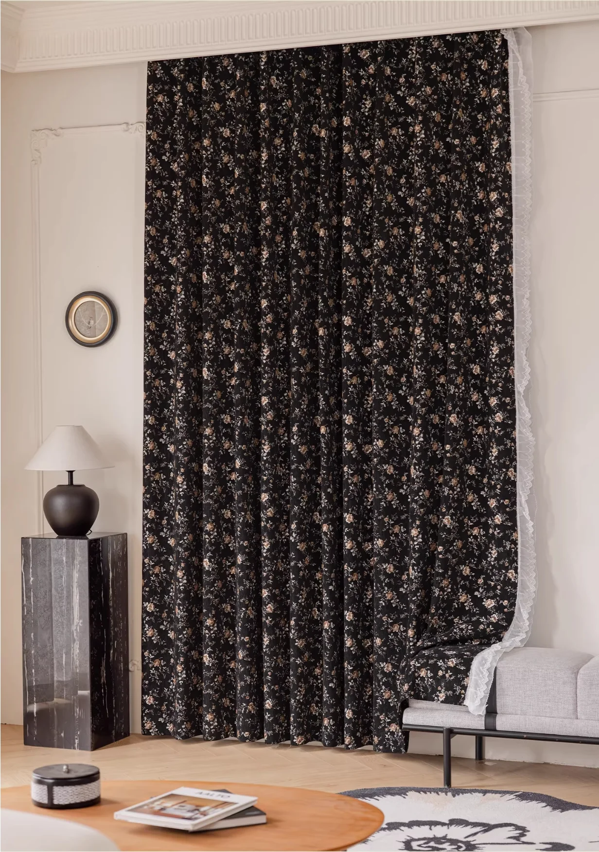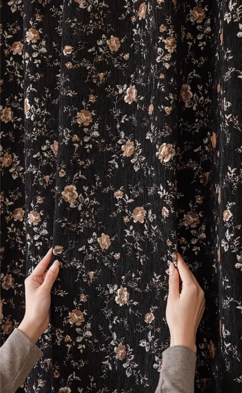 Midnight Rose Jacquard Curtain – Cocoa Bloom