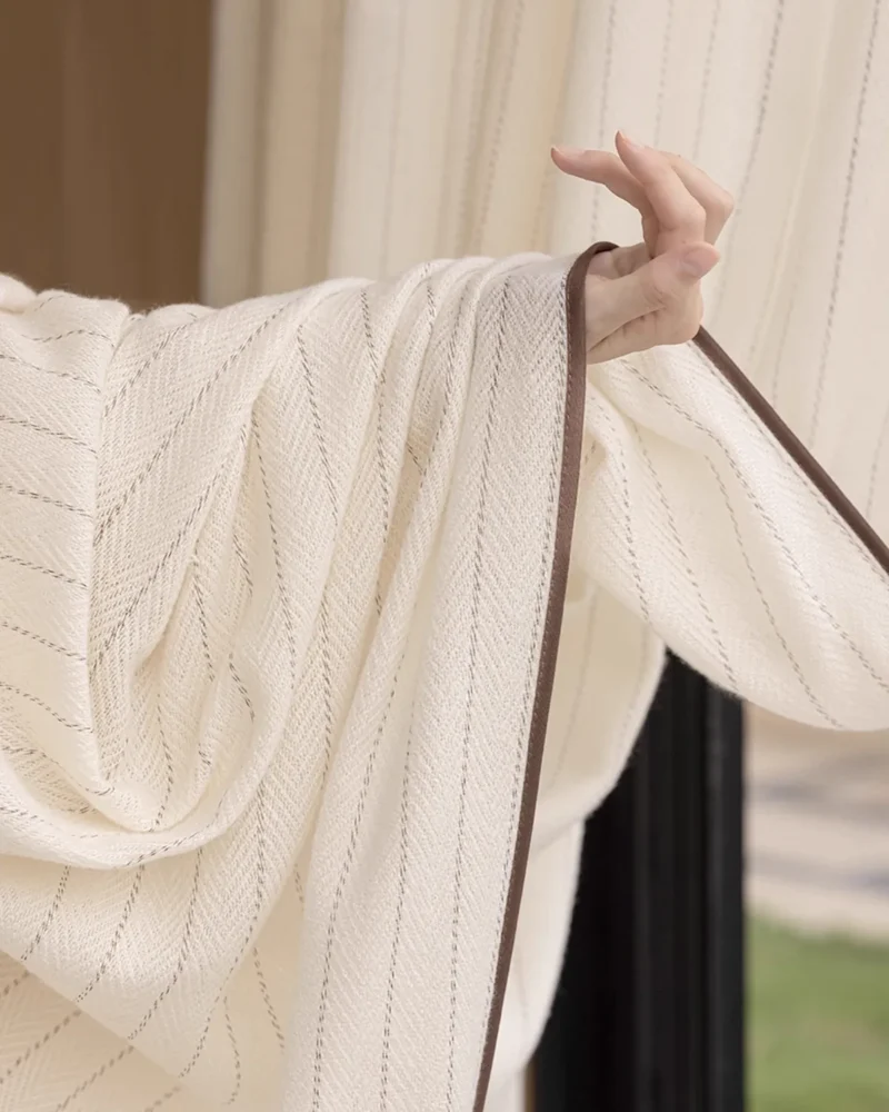 Mocha Pinstripe Sheer Curtain | Subtle Stripe Detail | S-Fold / Wave Fold