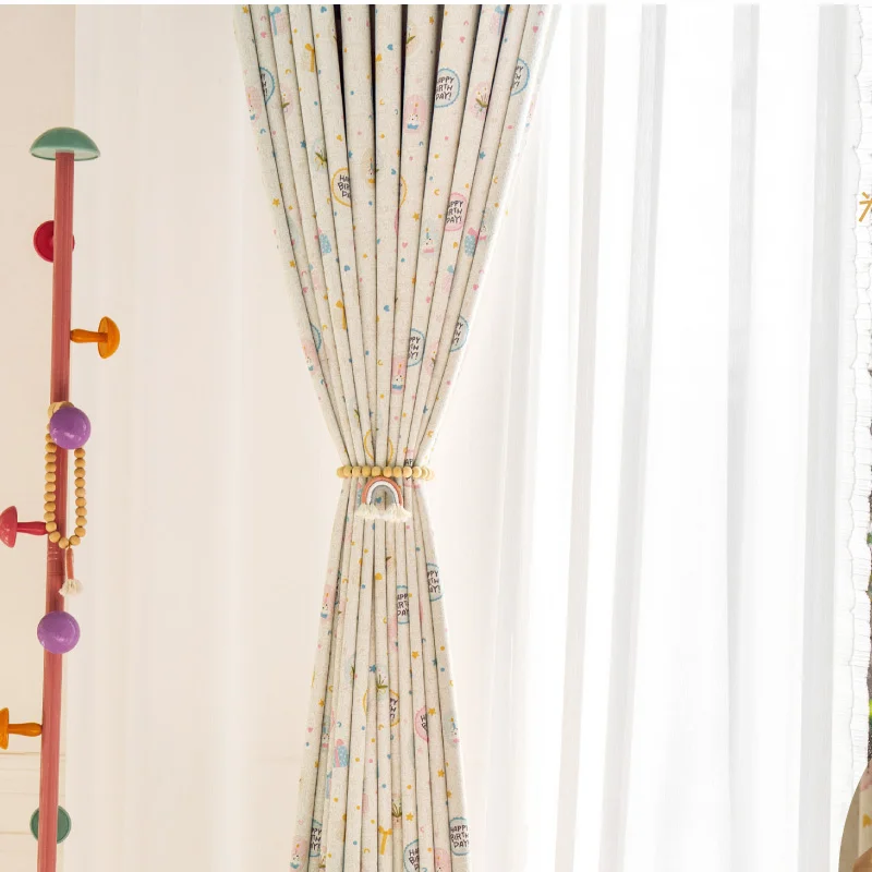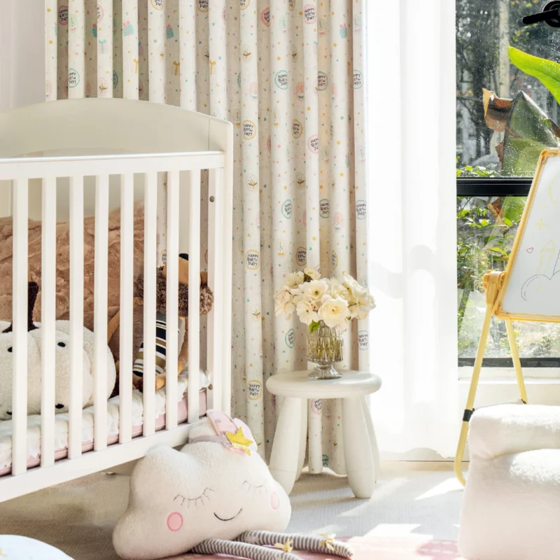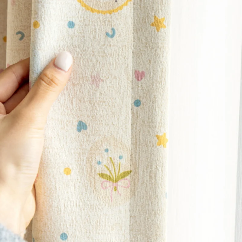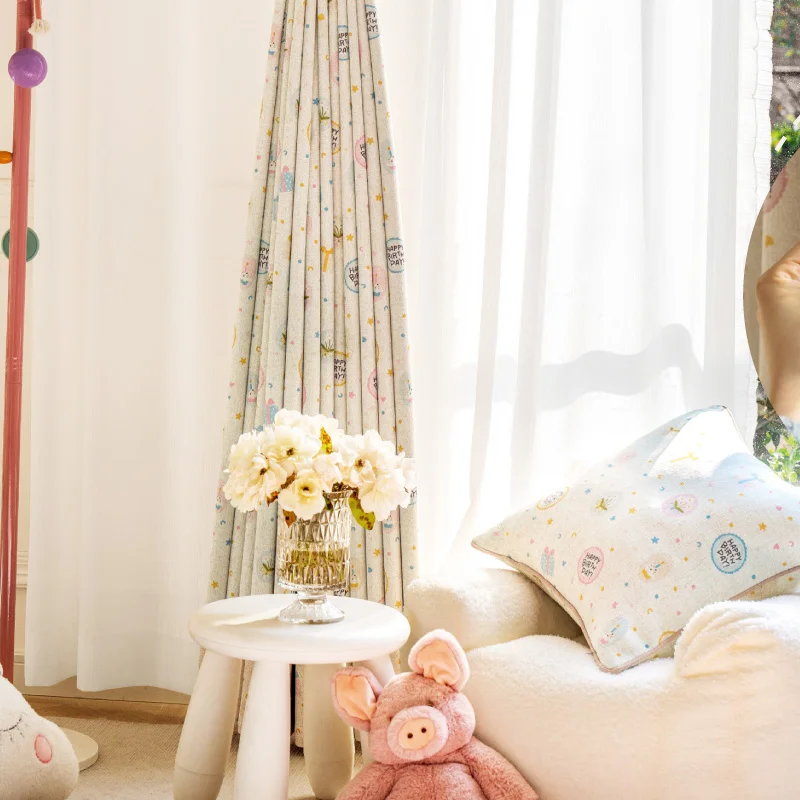 The Party Print Curtain by Lemonho brings joyful energy and soft pastel charm to children’s rooms. Designed with cheerful birthday motifs—like ribbons, flowers, stars, and “Happy Birthday” badges—this party print curtain instantly brightens nurseries, toddler rooms, and play corners. Its gentle color palette and whimsical details make it a standout pastel kids curtain that feels both festive and calming.