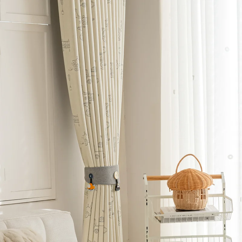 With its neutral beige base and playful construction motifs, this curtain fits seamlessly into boys’ bedrooms, nurseries, or Montessori-inspired play zones.
