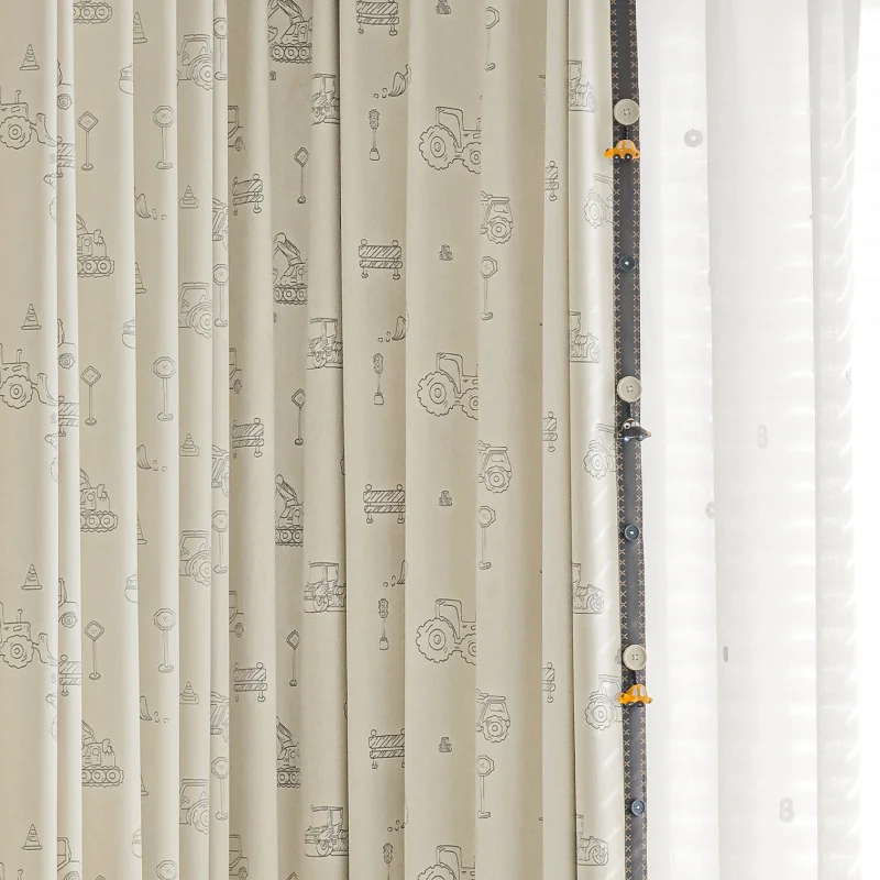 The Playful Construction Curtain by Lemonho is a jacquard curtain for kids featuring fun vehicle motifs like trucks, forklifts, road signs, and cones. Designed to spark imagination, this curtain transforms any toddler room or boys’ bedroom into a cheerful construction-themed space. Its soft jacquard texture gently filters sunlight while offering cozy privacy for naptime, playtime, or quiet reading.
