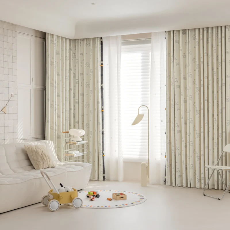 Crafted from breathable, semi-opaque fabric, it balances light control with child-friendly comfort and long-lasting use.