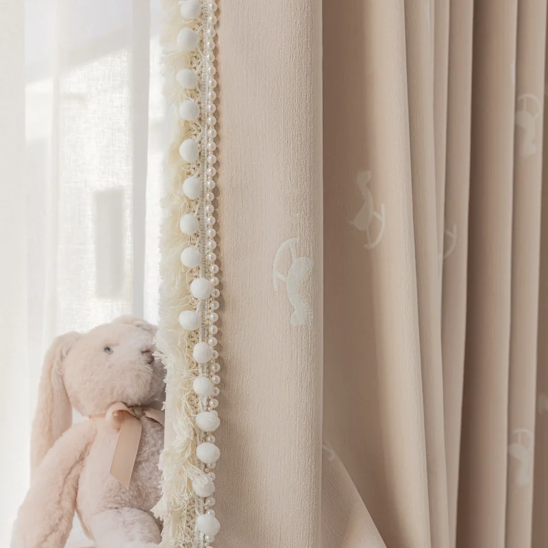 This curtain features an intricately woven rocking horse pattern, bringing a storytelling element to your child’s space. The jacquard texture is both elegant and fun, making it a standout jacquard kids curtain.
