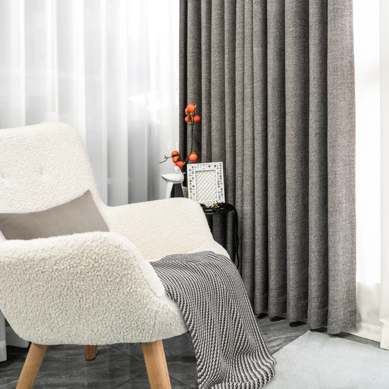 The clean texture supports Japandi, Scandinavian, and contemporary interiors where shapes and materials matter more than bold prints. It layers easily with sheers or blackout drapes, making it a versatile base for many design schemes.