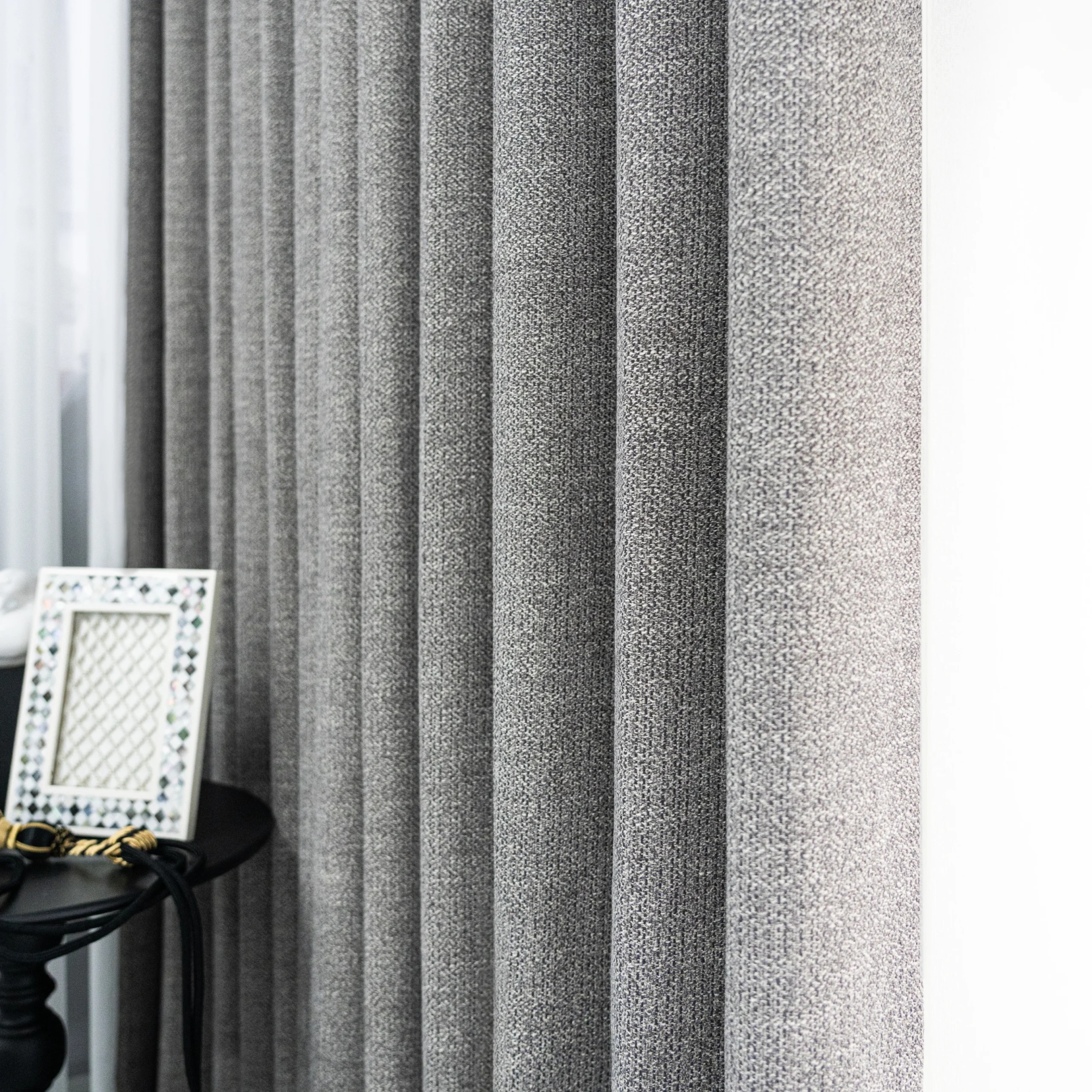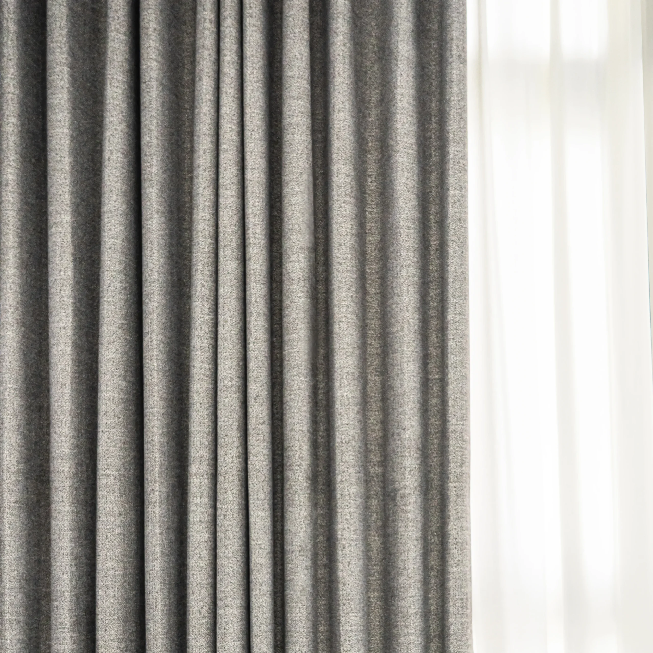 The Serene Weave Curtain is woven with a delicate, close-knit texture that reads almost solid from a distance, yet reveals gentle detail up close. This minimal weave adds rhythm and sophistication while keeping the overall look sleek and understated.