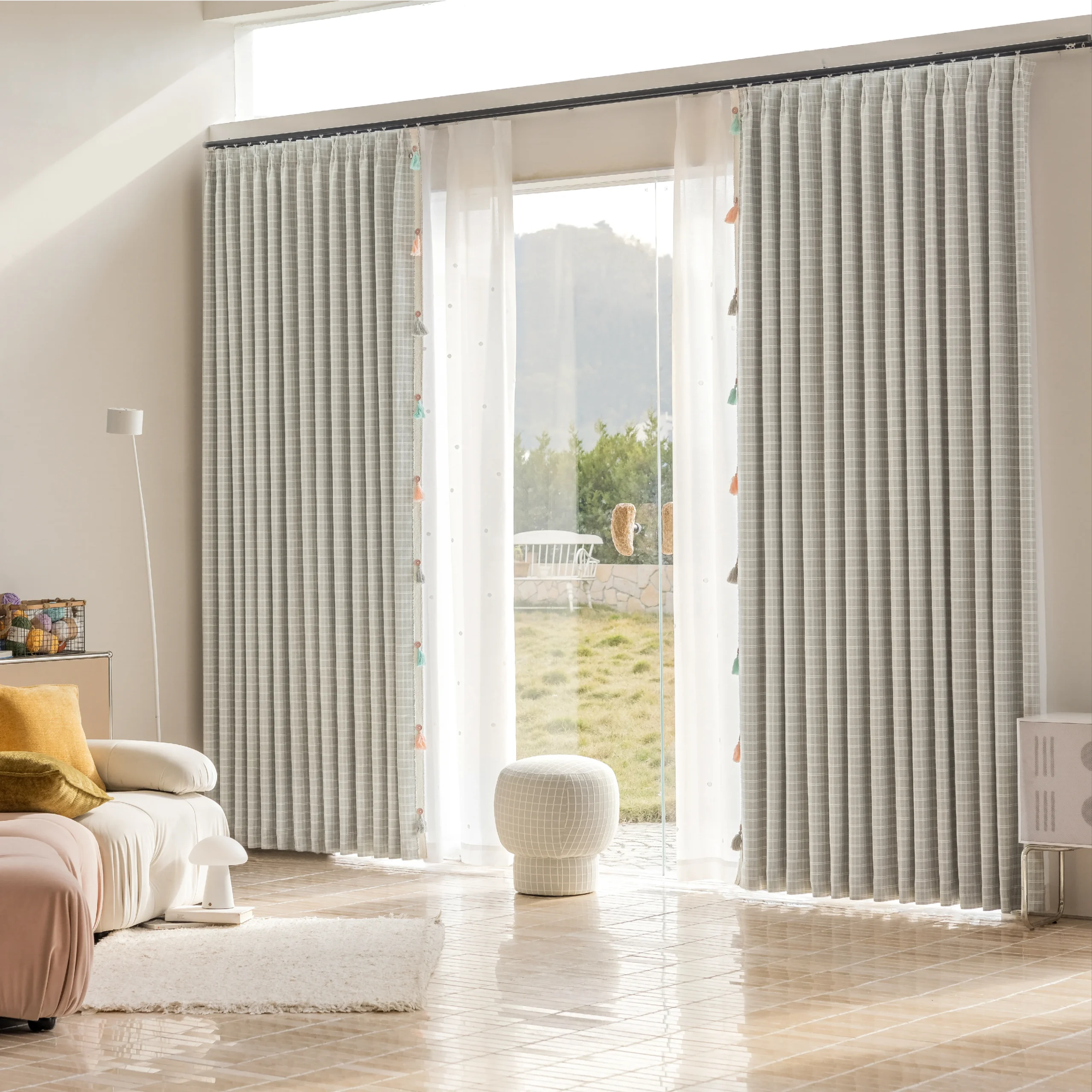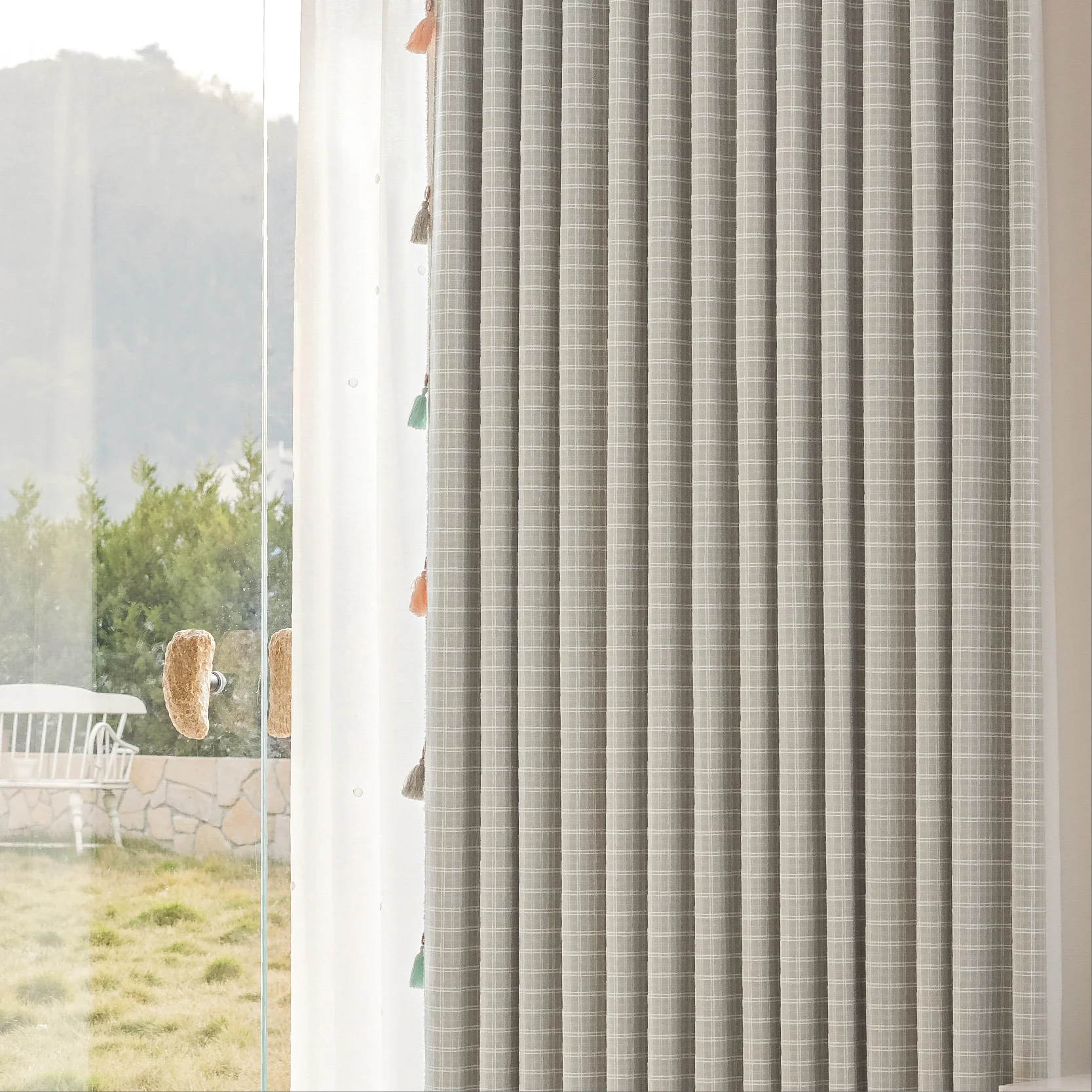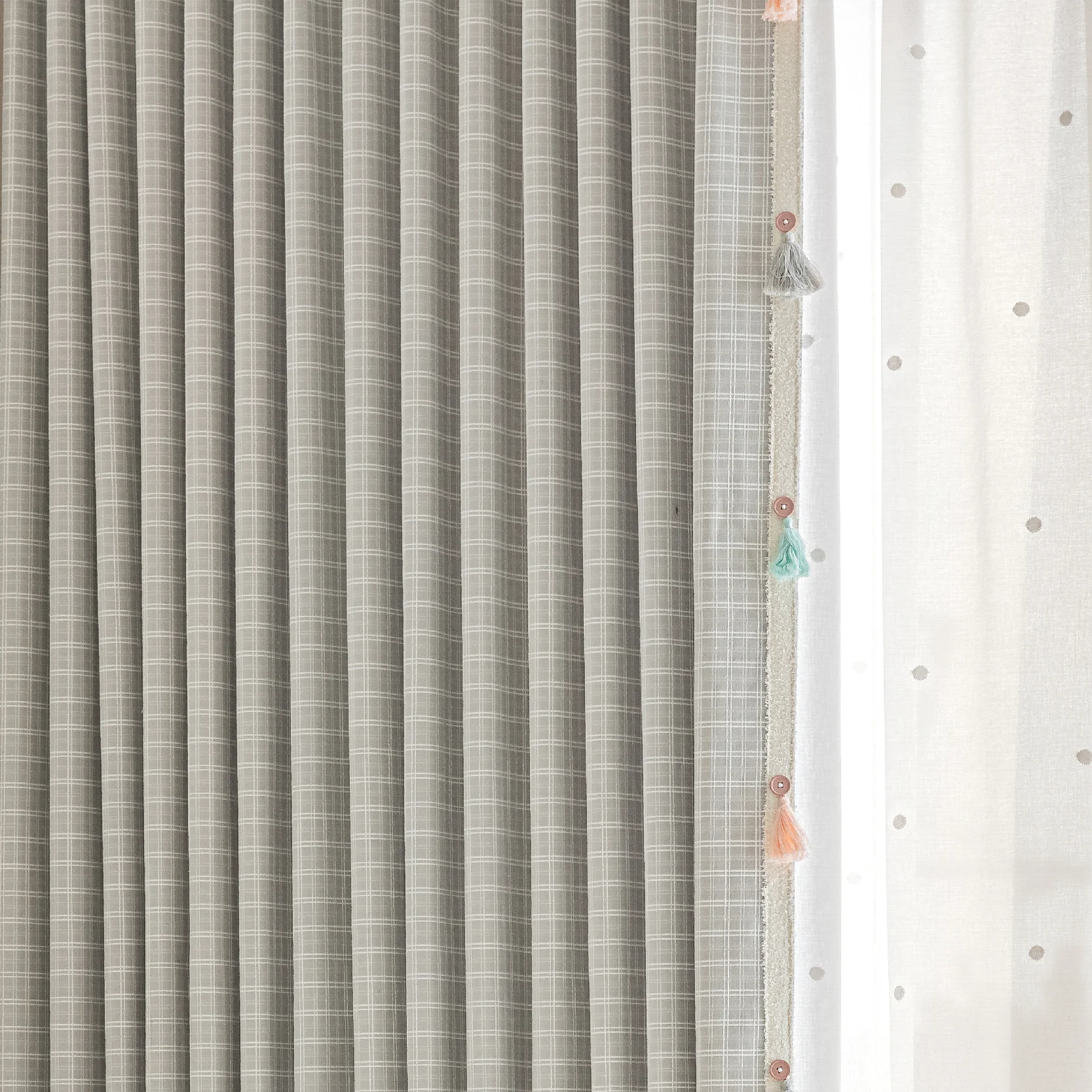 The neutral grid layout makes it easy to pair with various styles—from mid-century wood furniture to Japandi calm or modern rustic. Whether layered with sheers or used on its own, it offers quiet visual rhythm and enduring charm.